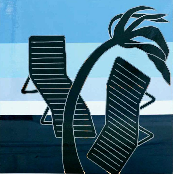 The graphic, cut-paste appearance are done with precision and with imperfection. The kaleidescope effect, flattened space and hawaiian shirt kitsch are part of the charm. I love sunsets and they help us see the beauty and forget our troubles. I believe that we need to surrender ourselves to the unknown, everything will be okay.